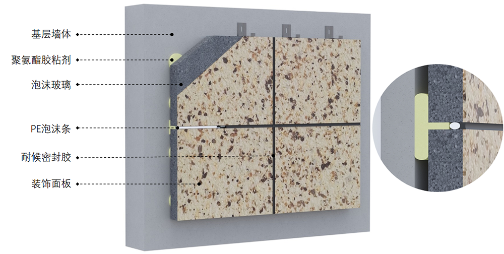 2.冷熱橋少,系統節能效果好:板縫內填滿聚氨酯密封材料,斷絕板縫熱橋,同時通過斷熱橋連接件的措施,減少系統熱橋,提高系統節能效果;