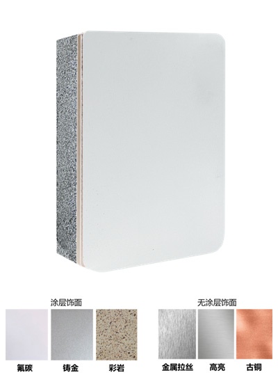 通過金屬復合板復合保溫芯材而成。采用粘貼+機械連接的方式安裝固定,具有輕質高強、安全性高、抗開裂、耐久性好等特點。